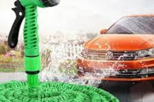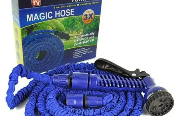 The Magic Garden Water Pipe 50ft expands with water pressure and comes with a multi-function spray nozzle—perfect for gardening, car washing, and outdoor cleaning.
